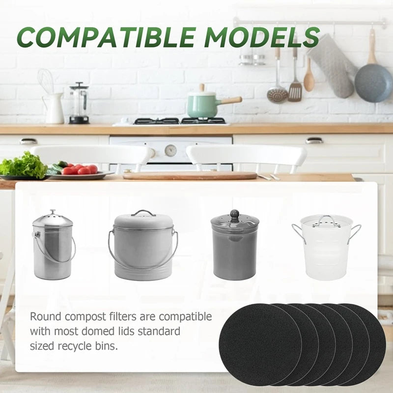 Optimal Size and Compatibility: Each round compost bin filter measures 6.7 inches in diameter and 5mm thick, ensuring a perfect fit for most standard-sized countertop compost bins with domed lids. These filters are ideal replacements for your kitchen's stainless steel compost bin.