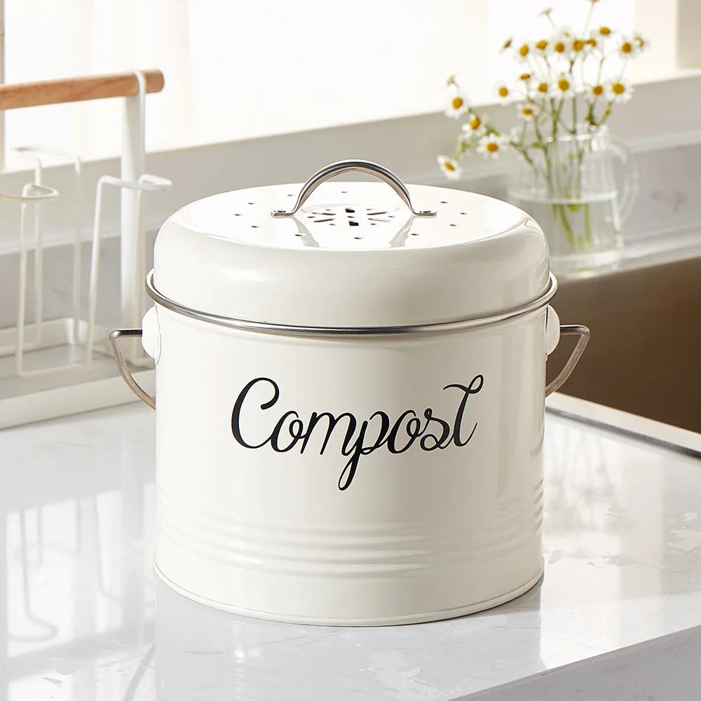 Nordic Style Home Compost Bin 3L Stainless Steel Kitchen Compost Bin Kitchen Composter for Food Waste Coal Filter ZM924